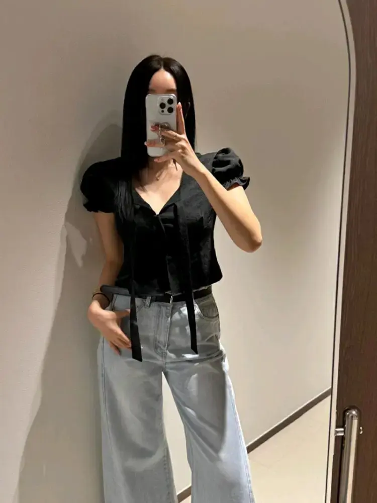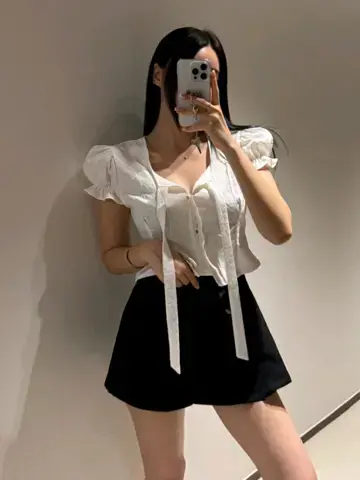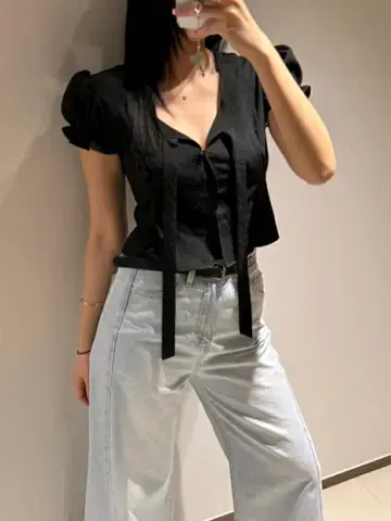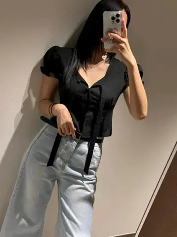 花纹泡泡袖上衣샐리 플라워 블라우스