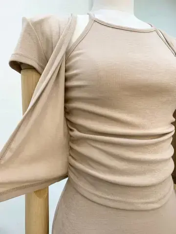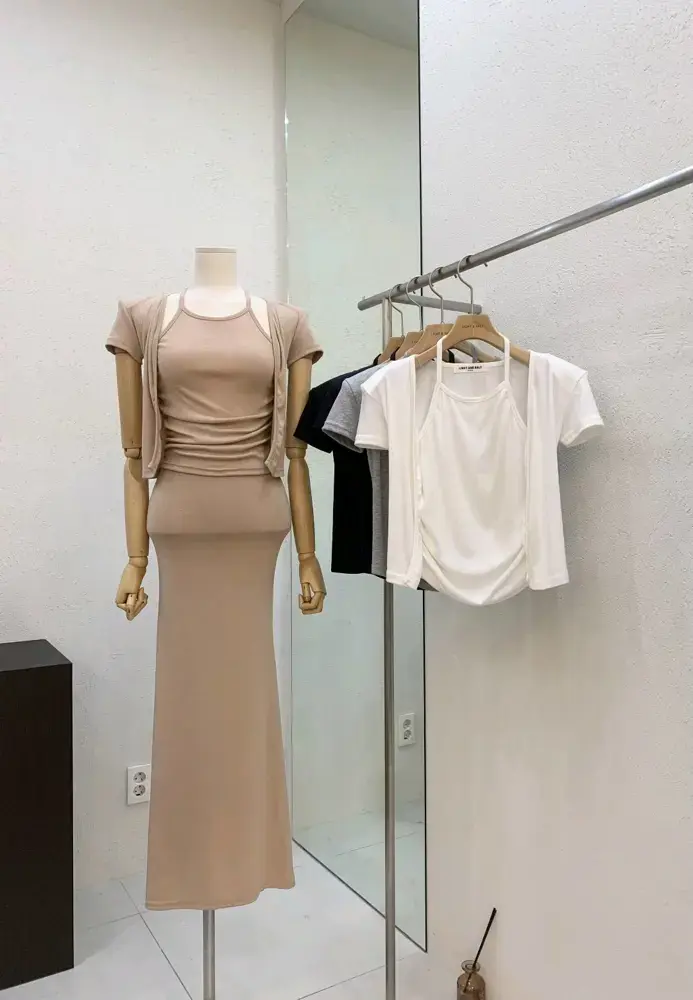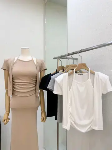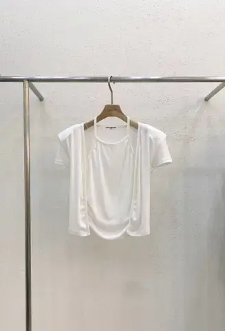 垫肩短袖开衫假两件크림 홀터 가디건