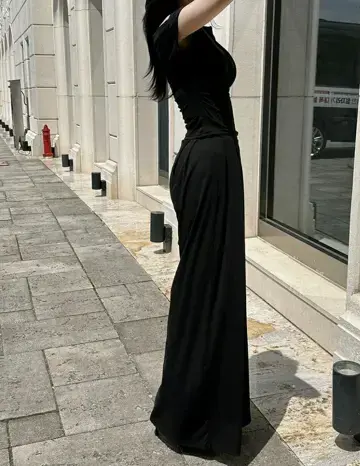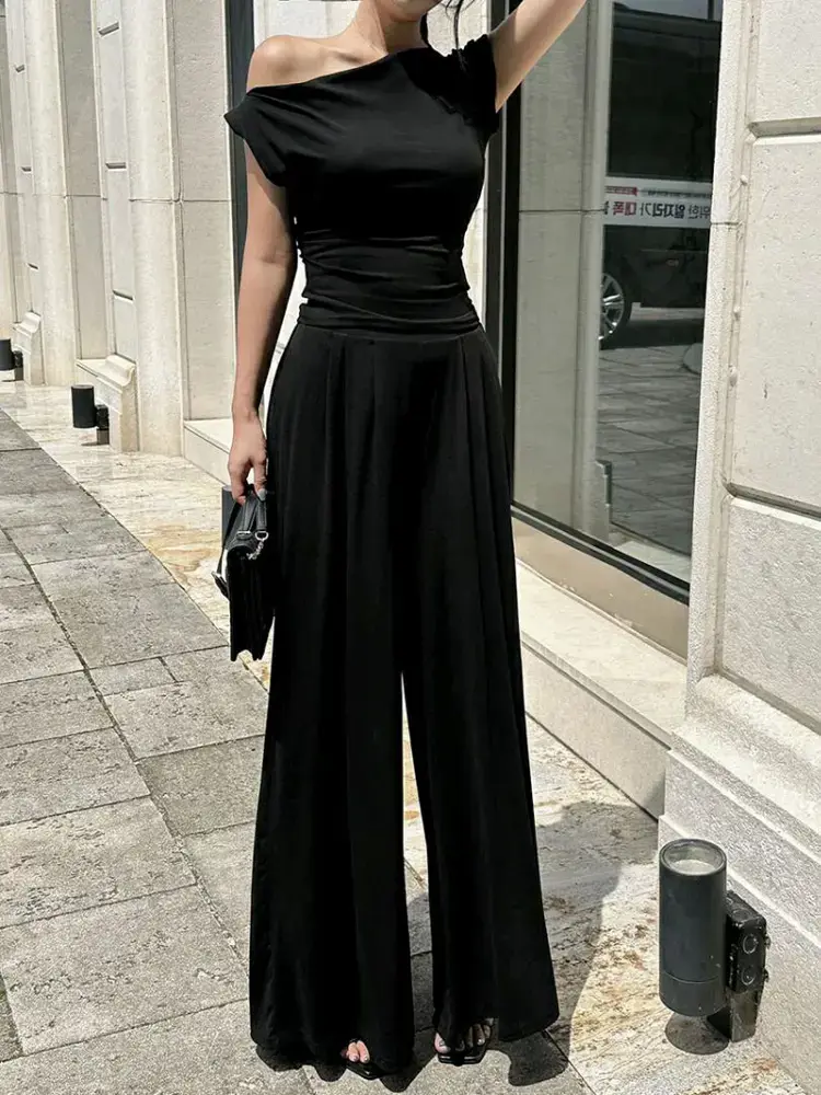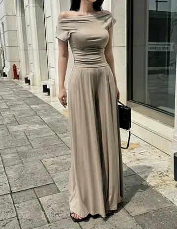一字肩修身上衣阔腿裤套装메르시 투피스셋트