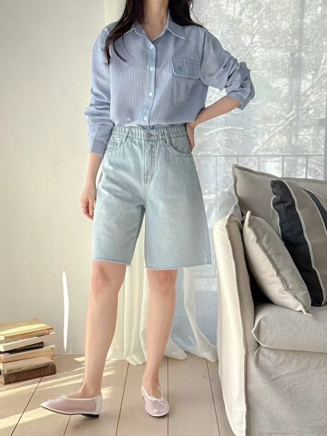 ✔️Style No - 5124 델리 밑단컷팅 캣워싱 반바지