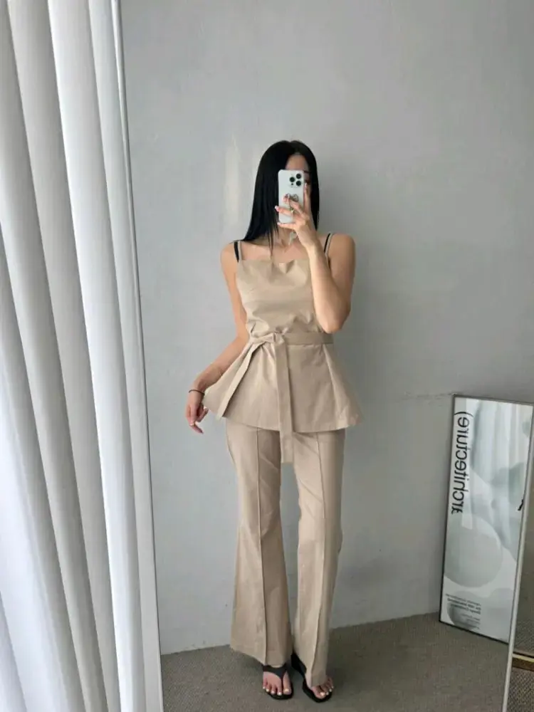 棉麻修身喇叭西裤빌리 린넨 핀턱 부츠컷 슬랙스