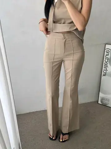 当前位置:首页 > 正装裤 > 棉麻修身喇叭西裤빌리 린넨 핀턱 부츠컷 슬랙스
