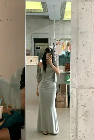 当前位置:首页 > 套装 > 假两件短袖鱼尾裙套装크림 홀터 반팔 가디건&머메이드스커트셋트