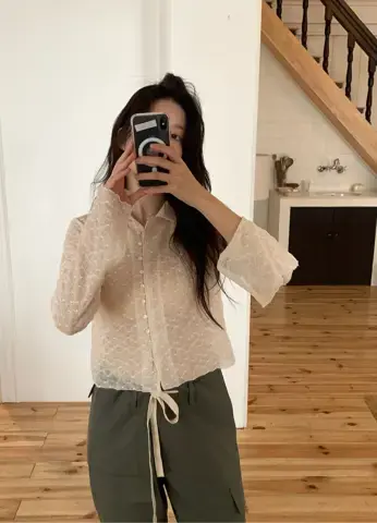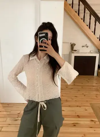 东大门爆款上衣레이스버튼