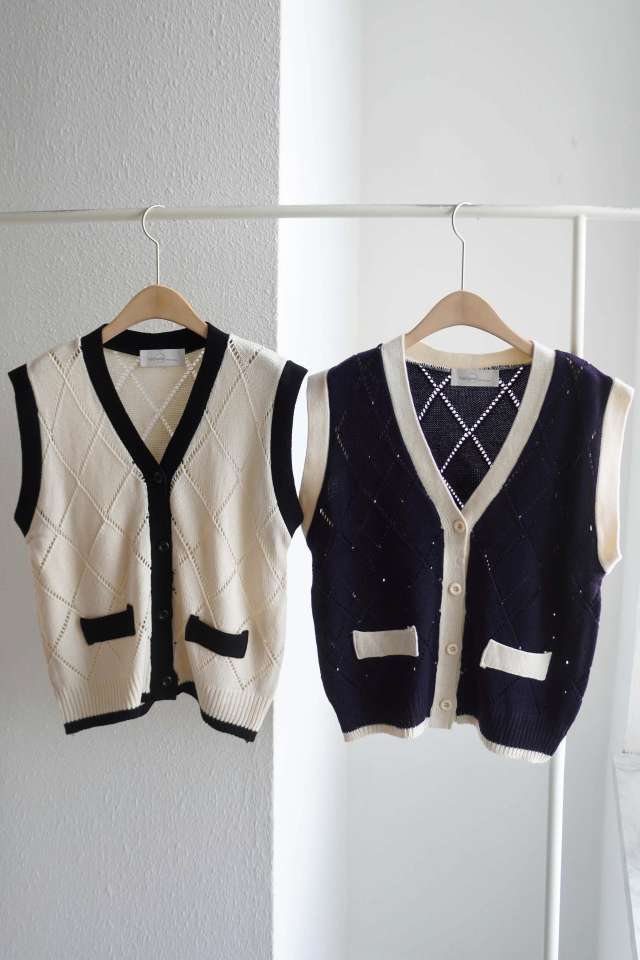 품명 ; 치치배색조끼