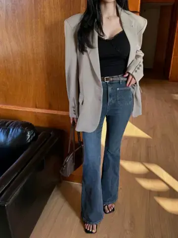 비비 포켓 레직기 롱 부츠컷 데님