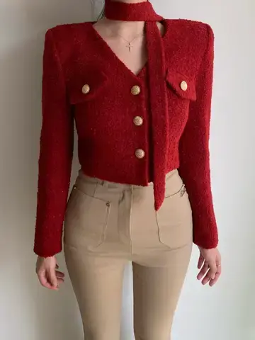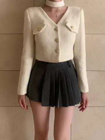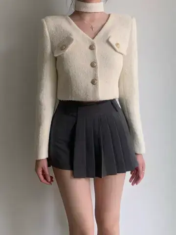 로어 울 트위드 타이 자켓