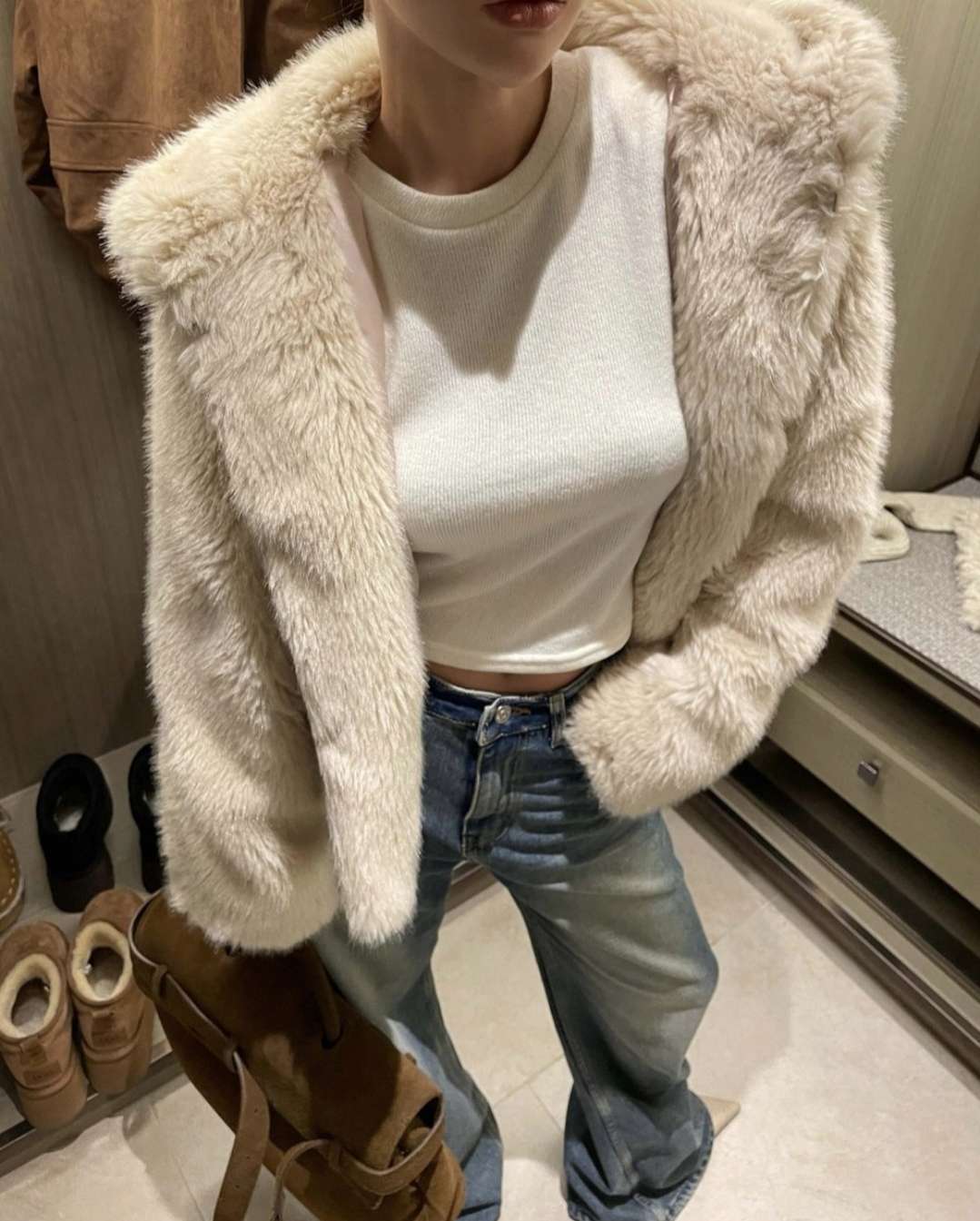 밍크퍼후드집업