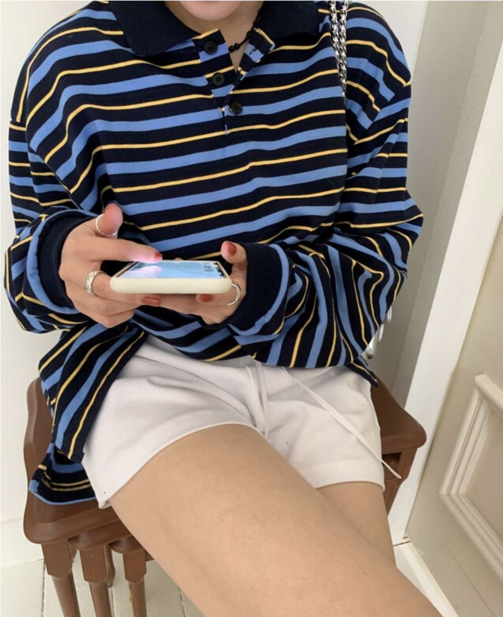 카라배색단T