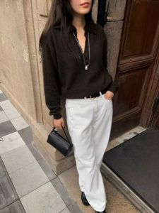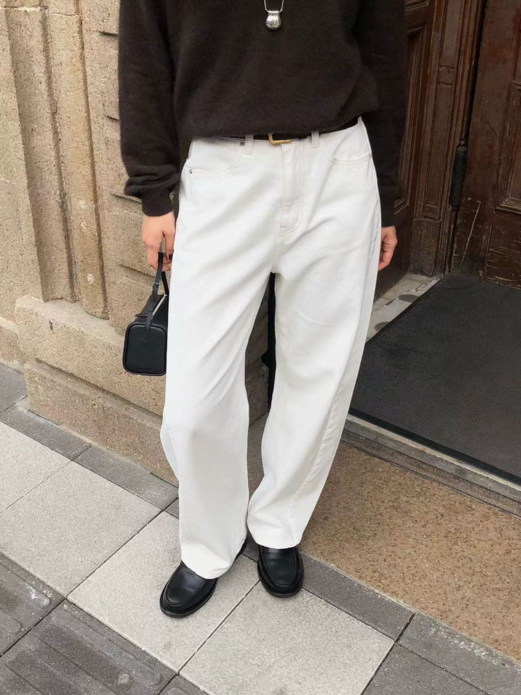 curved denim pants