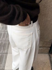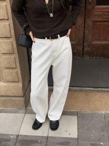 curved denim pants