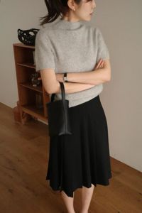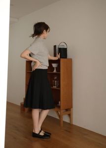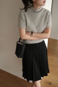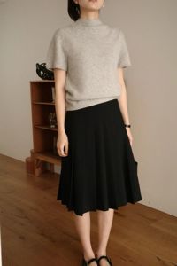 Summer wool midi pleats skirt