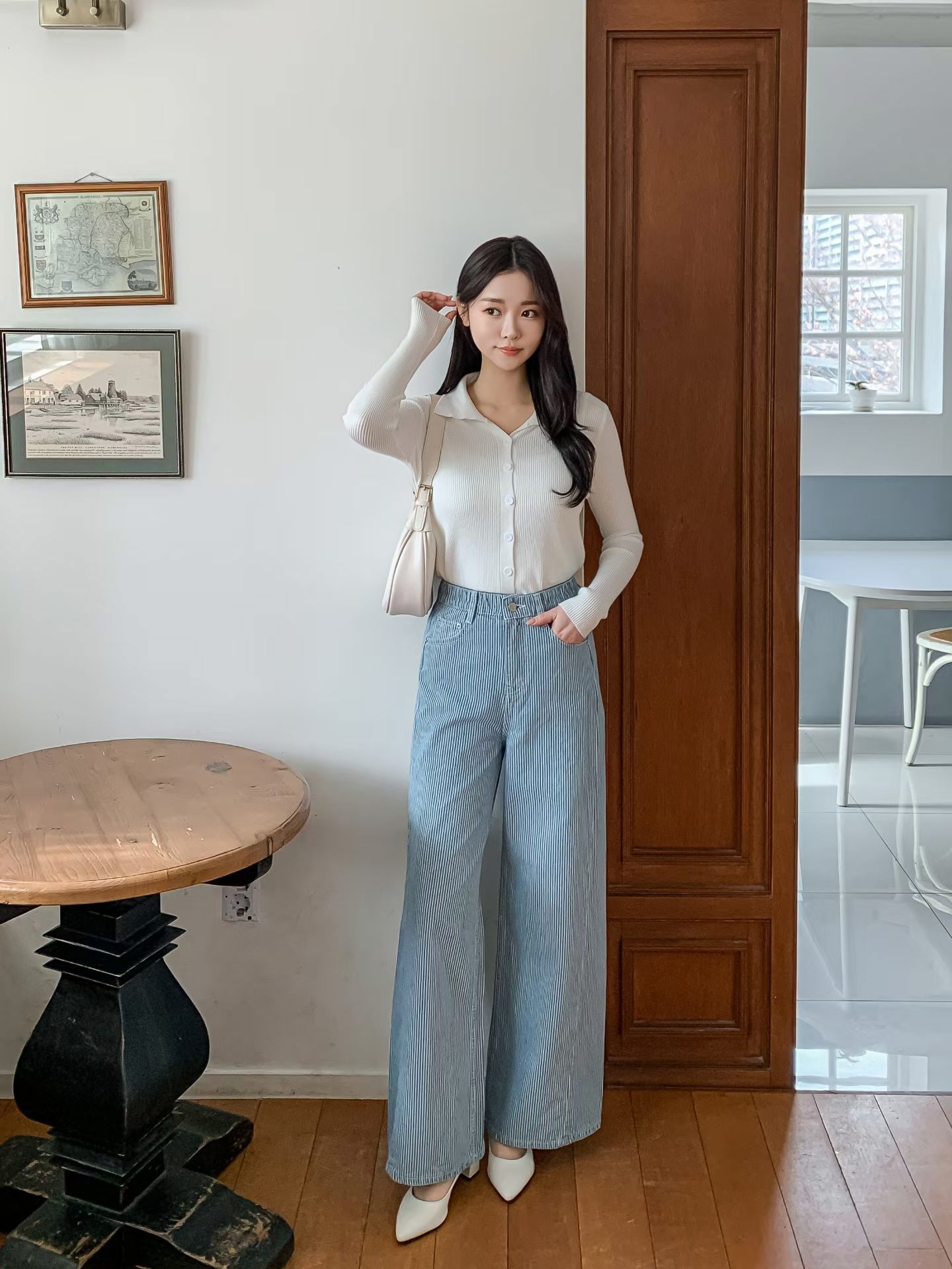 ✔️Style No - 6126 탐탐 와이드 절개 스트라이프 팬츠