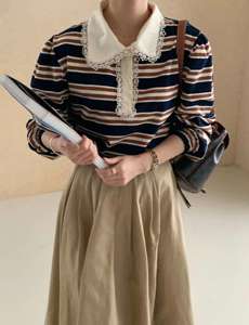 레이스깃펀칭T