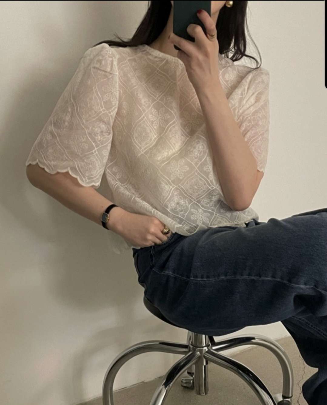 레이스물결T