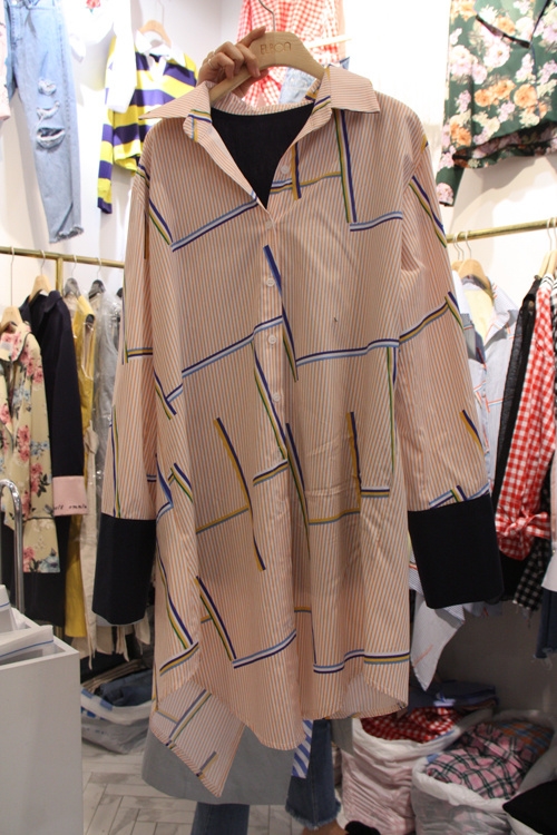 APM- 翻领长袖条纹连衣裙 翻译