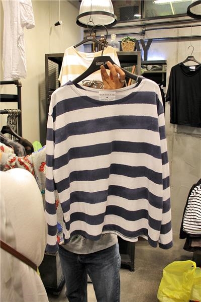 DESIGNER- 圆领长袖条纹T恤 翻译