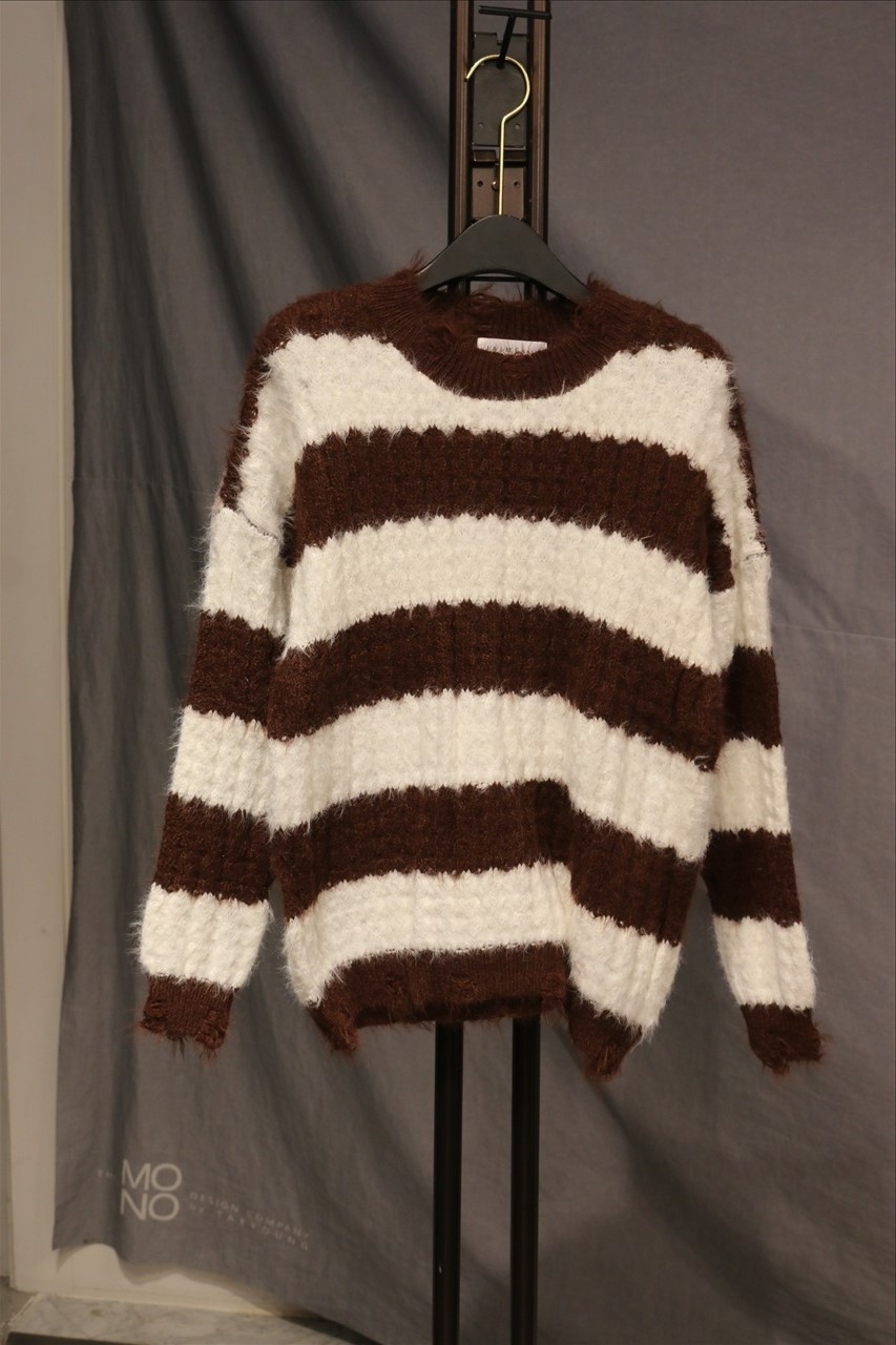 QUEENS- 圆领长袖条纹针织衫/开衫 翻译