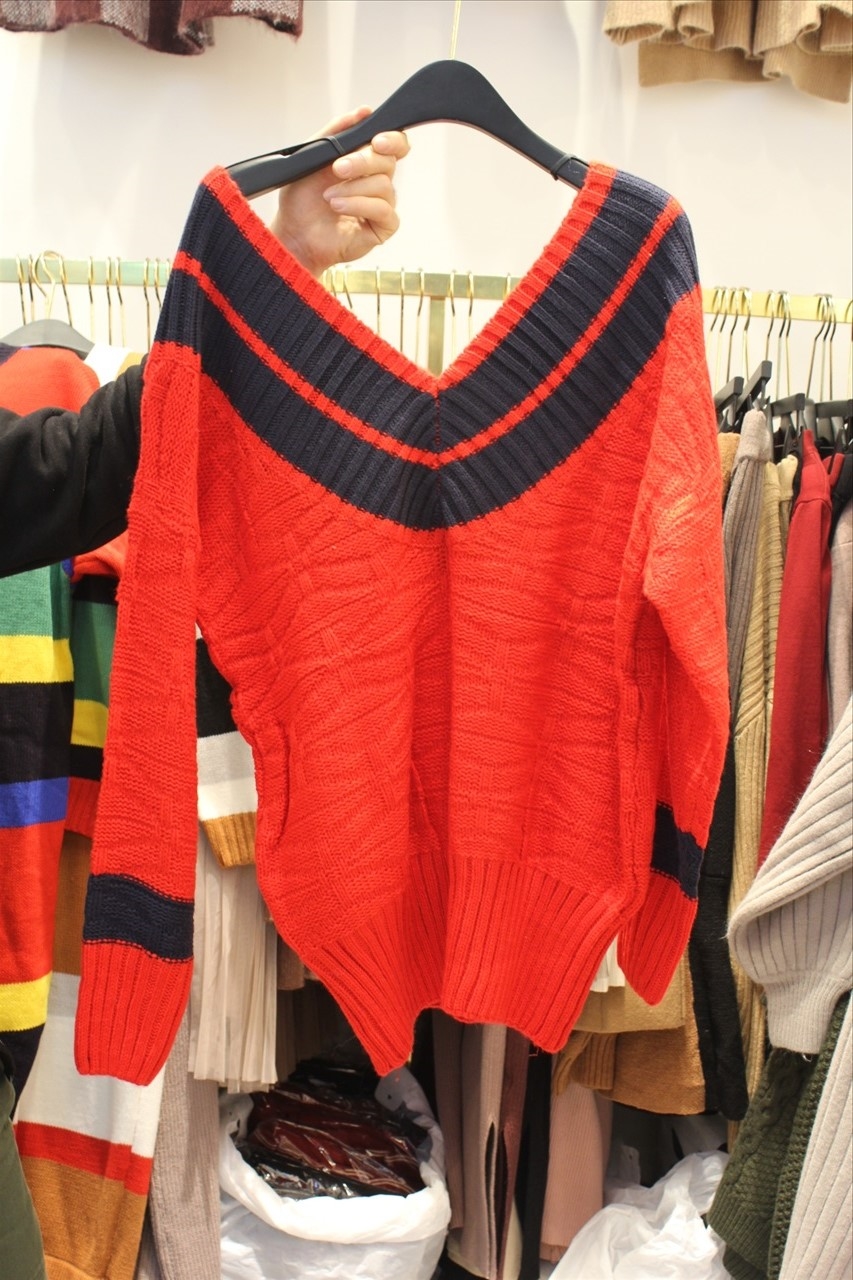 QUEENS- V领长袖混色针织衫/开衫 翻译