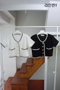 배색 볼레로 가디건