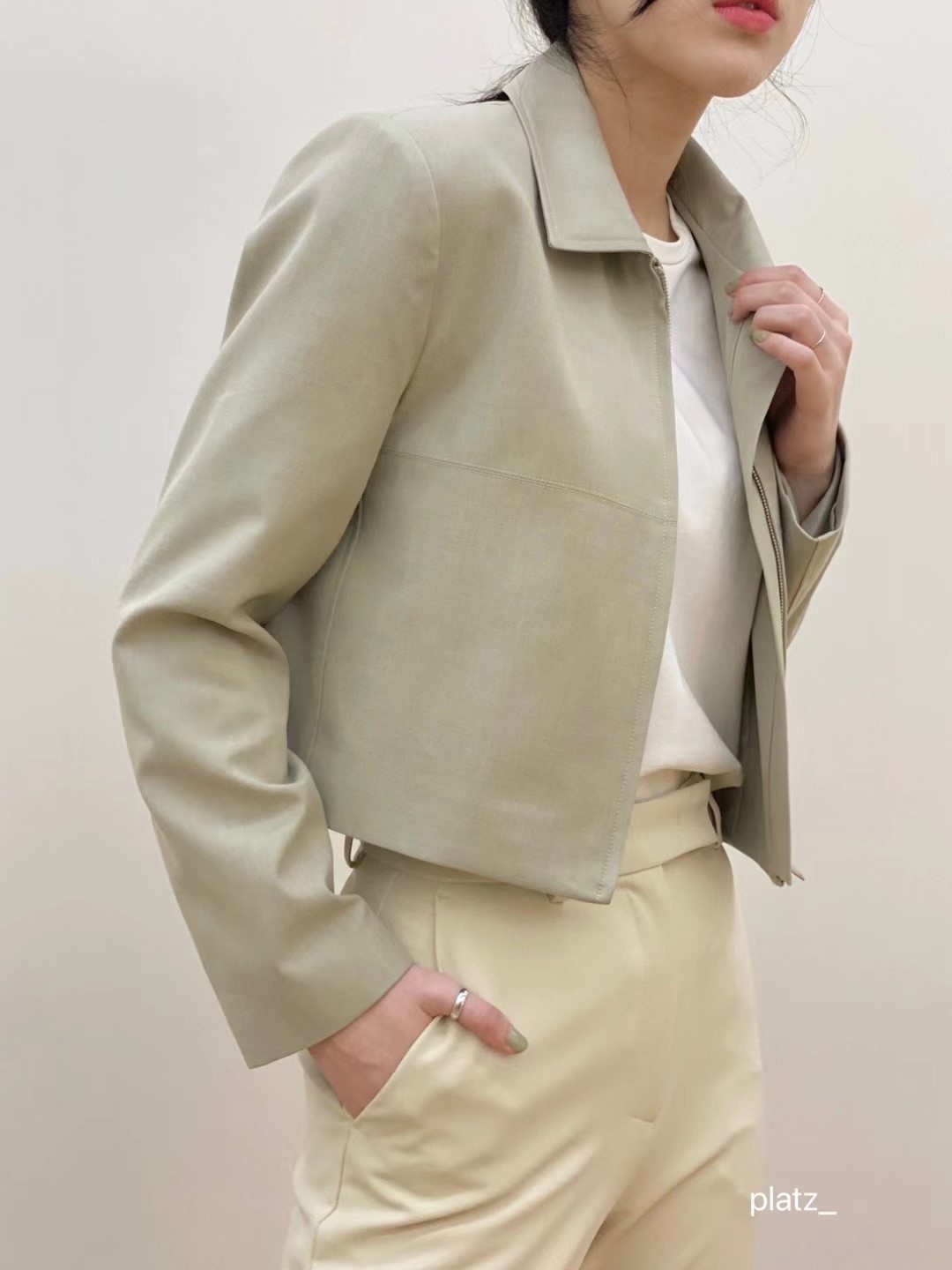 크롭 에나멜 자켓