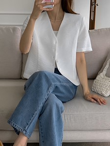 Dress room 2022 , 히든 버튼 반팔 자켓