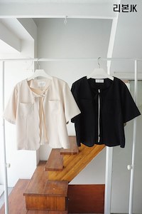 Dress room 2022 ss 히든 버튼 반팔 자켓