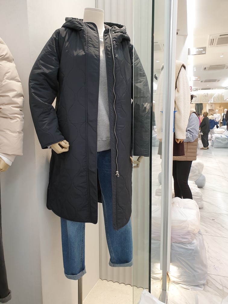 후드 퀄팅 롱 패딩