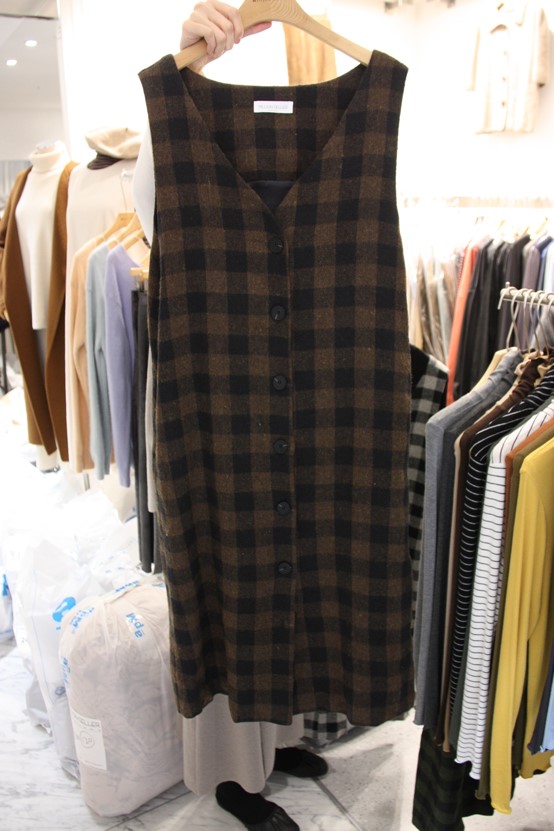 체크 반 소매 원피스