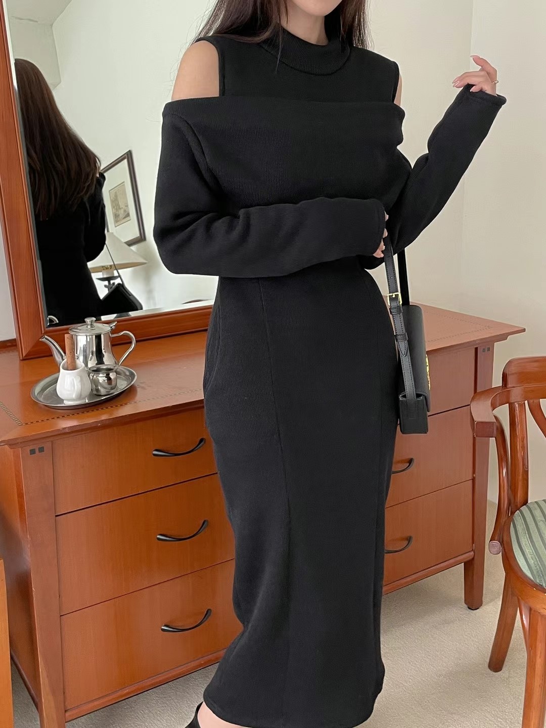 루즈 폴라 원피스 ( 니트 골지 터틀넥 원피스 )