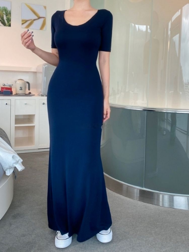 拉链设计弹力连衣裙