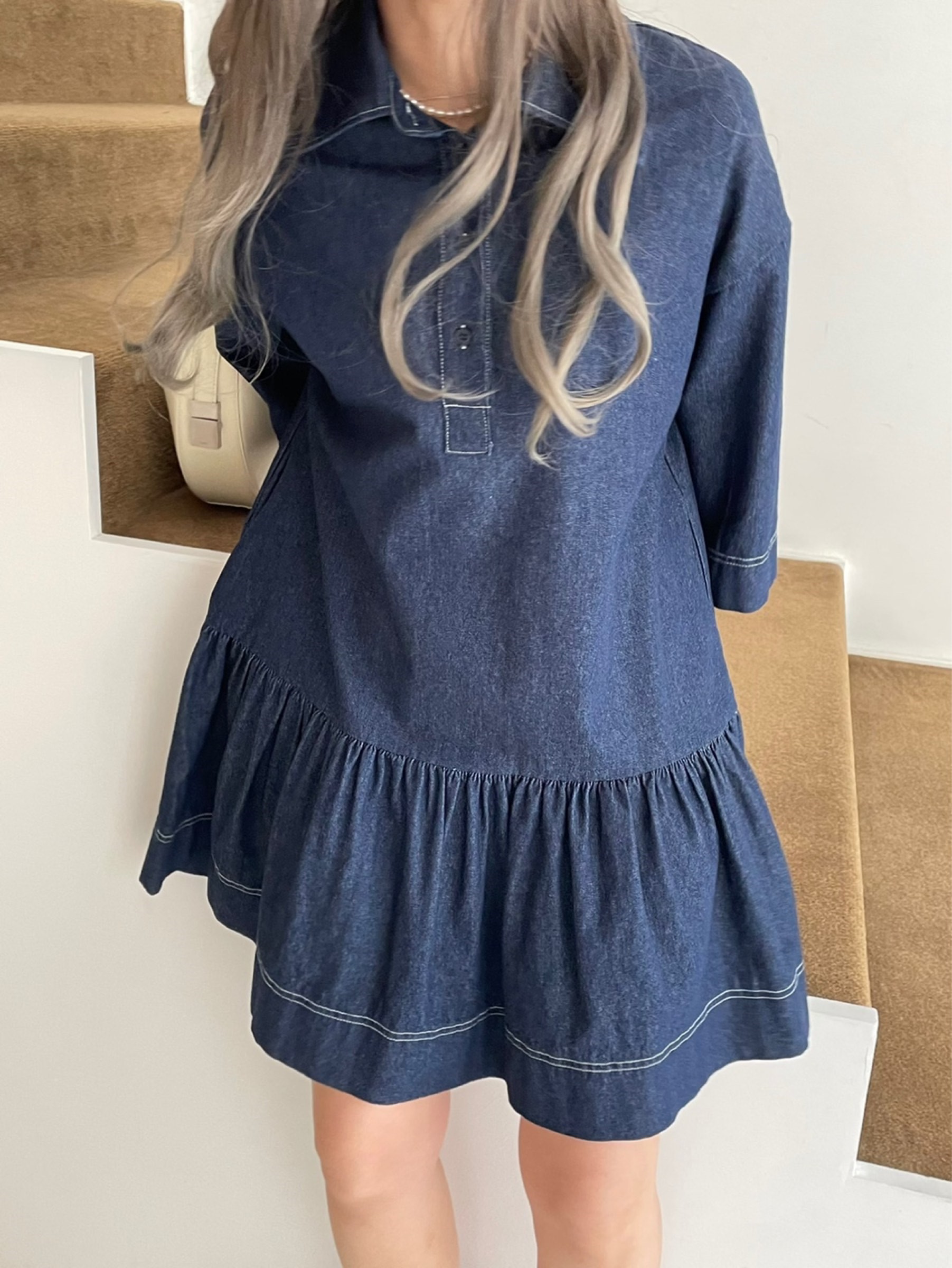 스트라이프 셔츠 롱 원피스