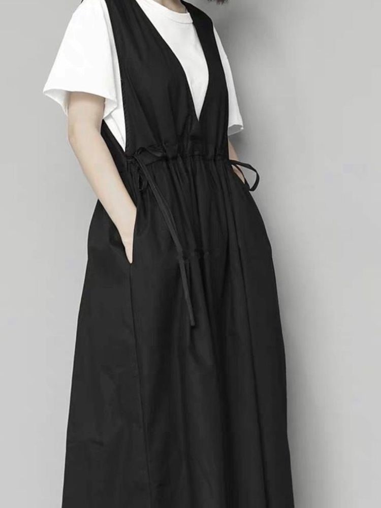 코튼 스트링 멜빵 원피스1
