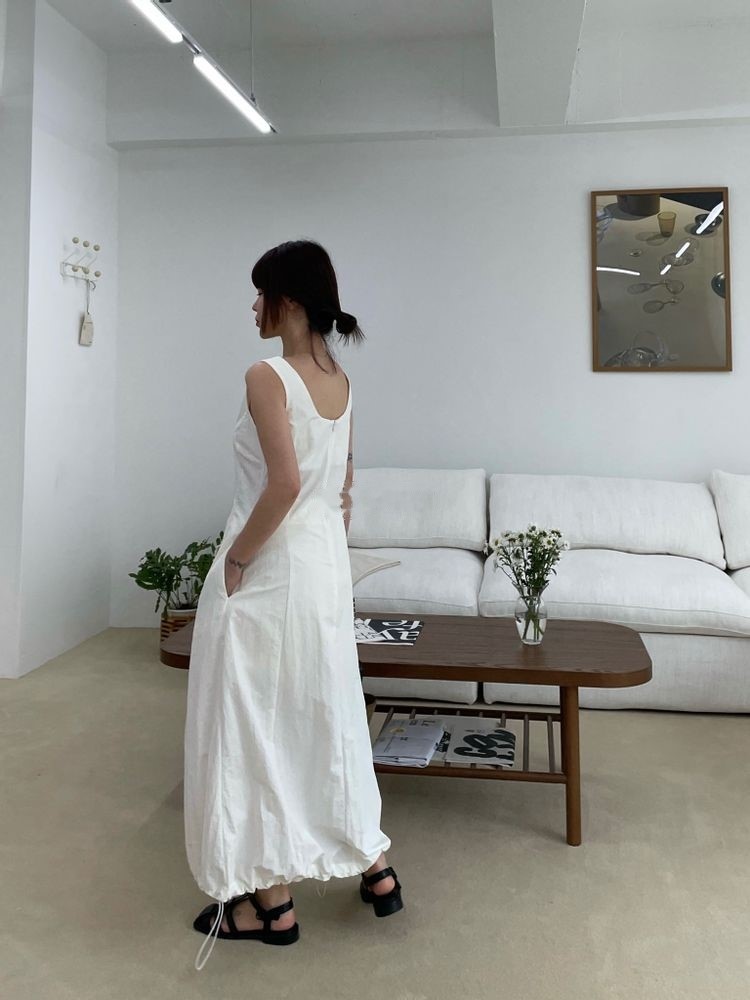 코튼 스트링 멜빵 원피스1