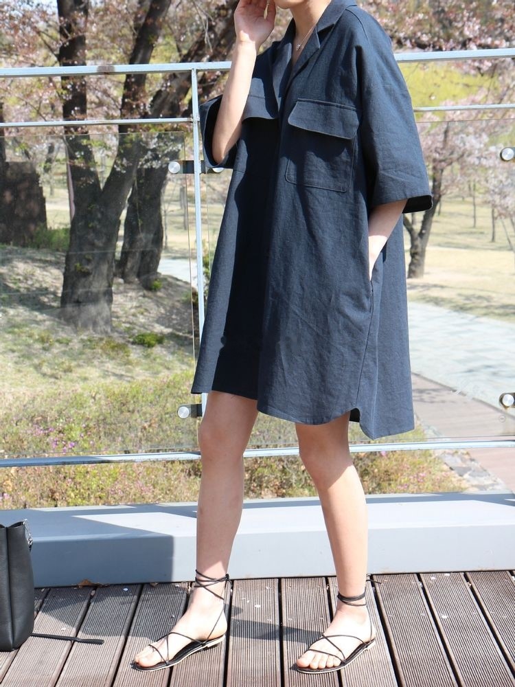 코튼 스트링 멜빵 원피스1
