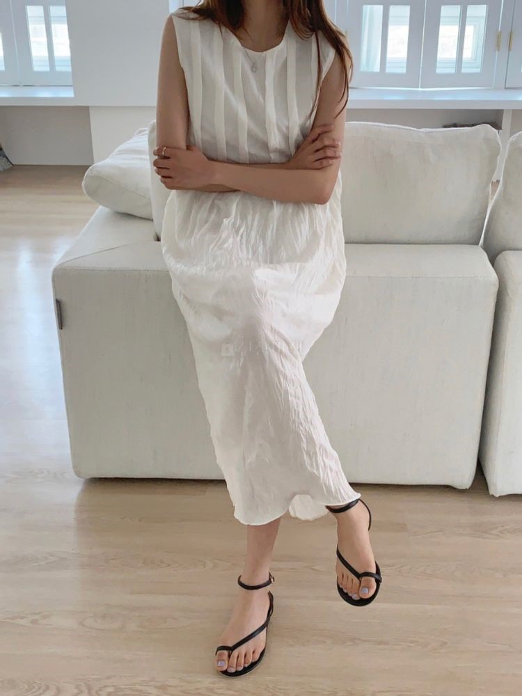 코튼 스트링 멜빵 원피스1