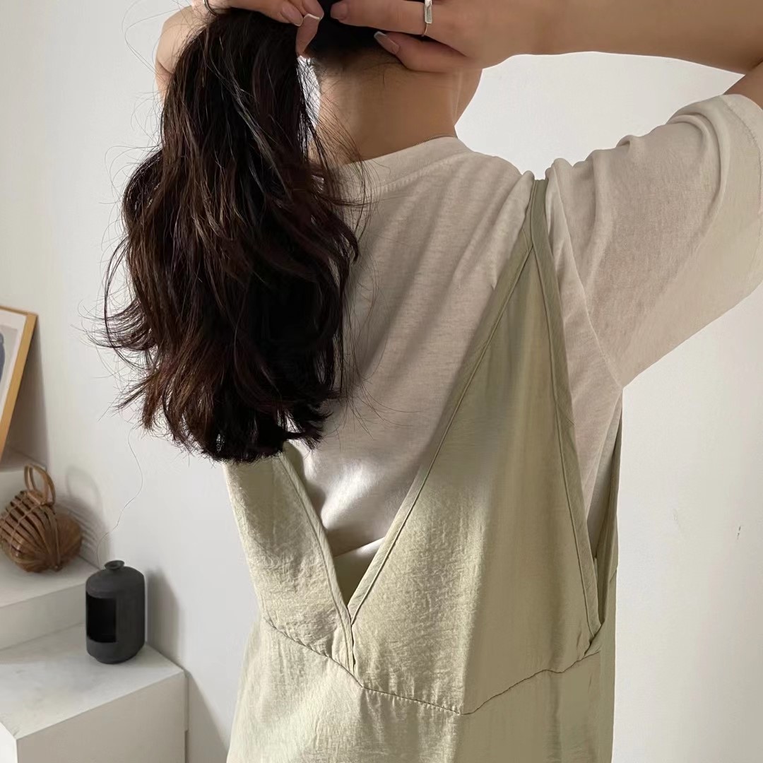 코튼 스트링 멜빵 원피스