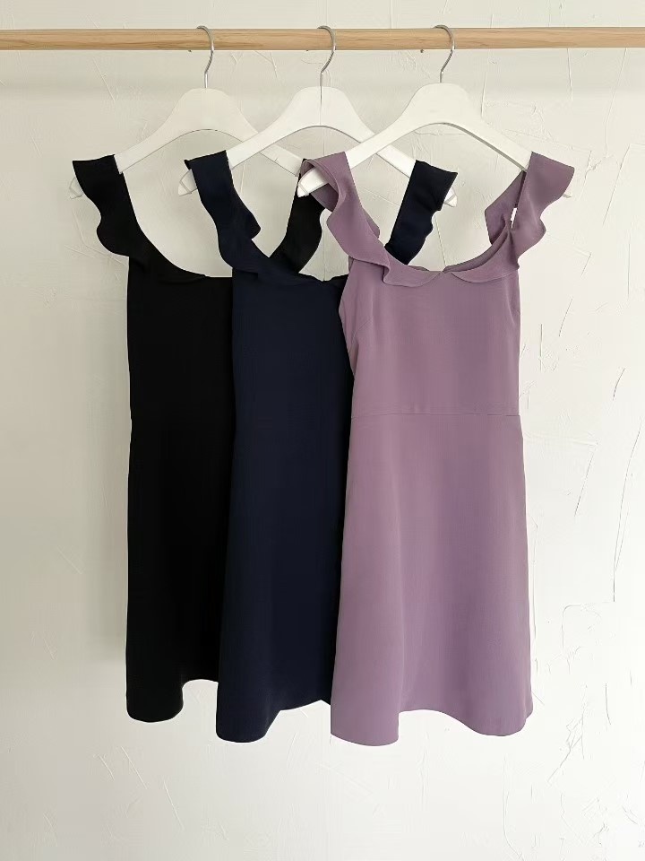 纯色荷叶边连衣裙