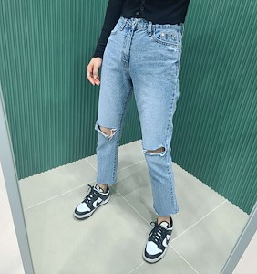 원데미컷팅데님팬츠