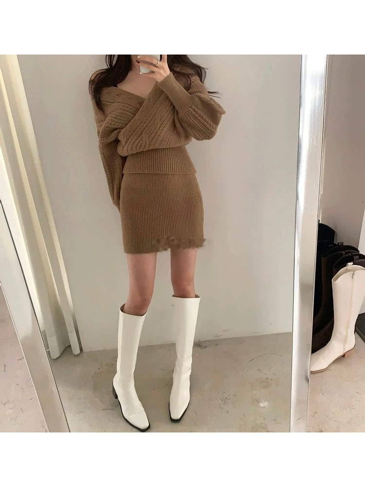 신상 기모 양털 스웨터와 스커트 세트