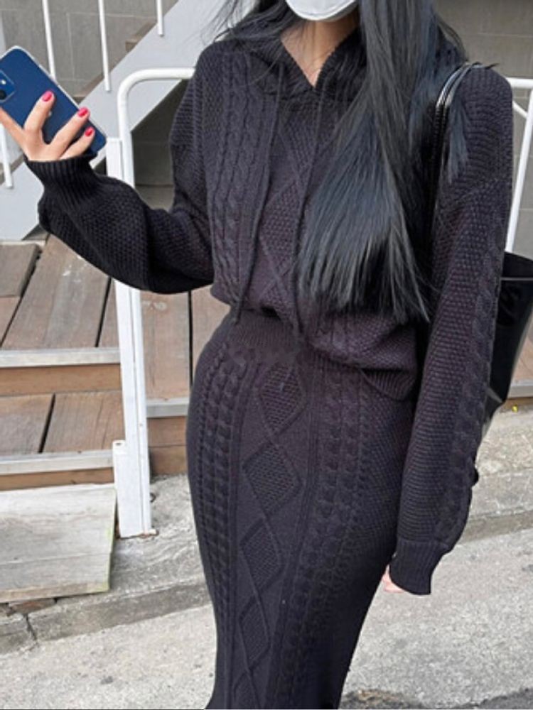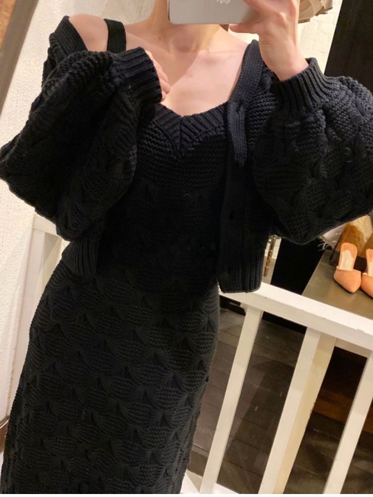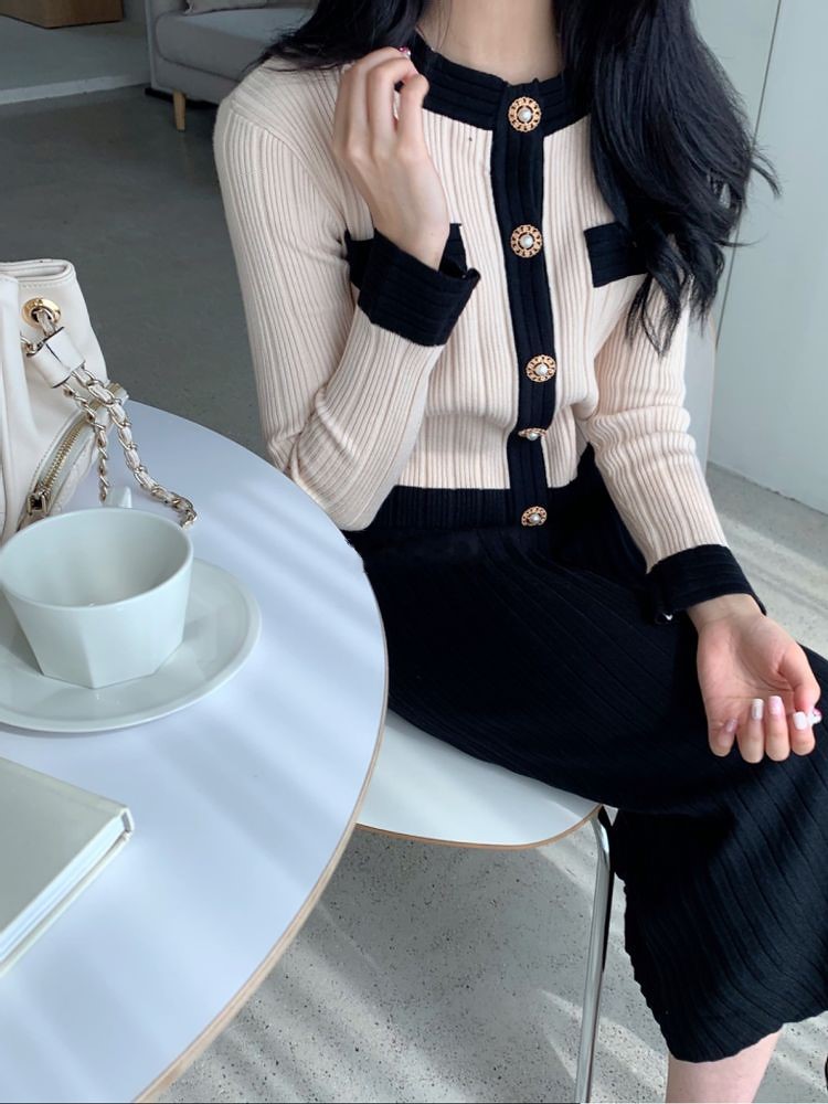 브이 카라 골지 니트 투피스 set1