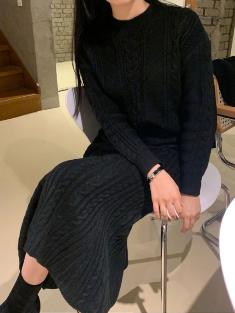 튤립 긴팔 니트 투피스 set1