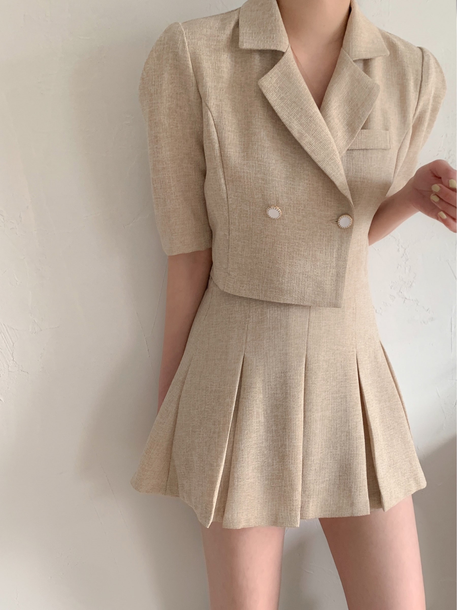 플리츠조끼 셔츠set
