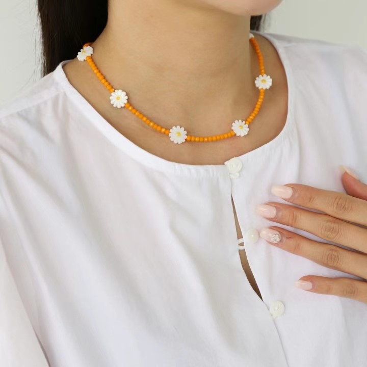 项链颈链 圆形 编织款 手工款亚克力 珍珠