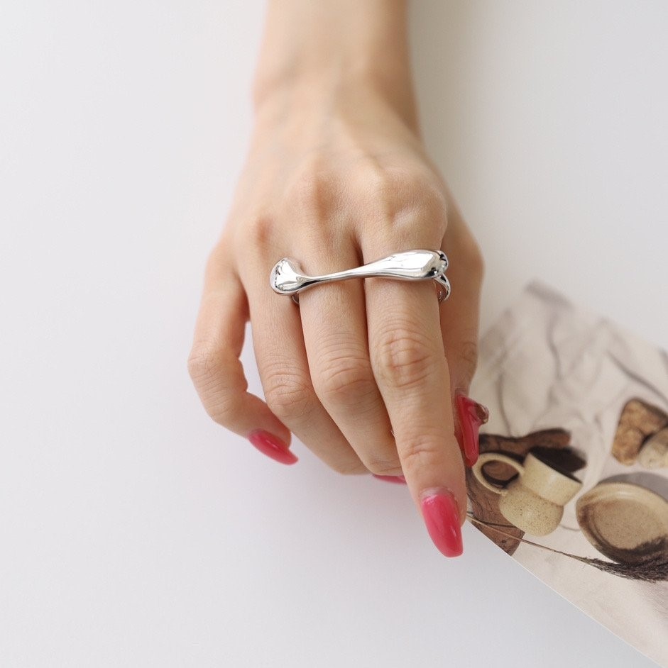 开口戒指 椭圆形 镜面 ins风 两个颜色