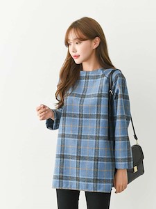 울체크블라우스