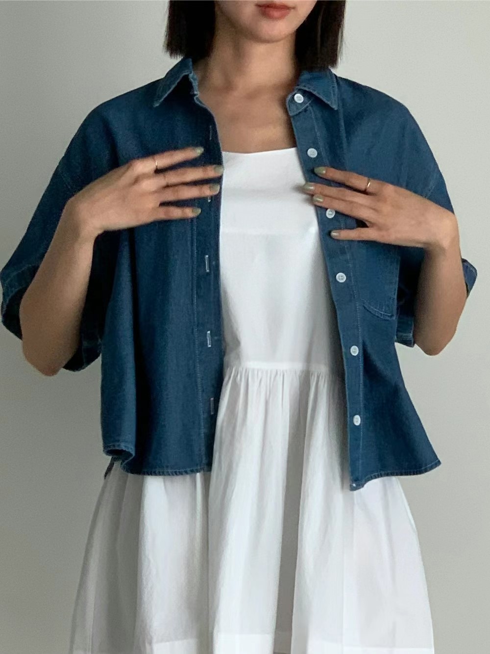 단추반팔남방