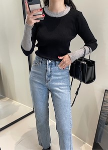 배색골R니트T1