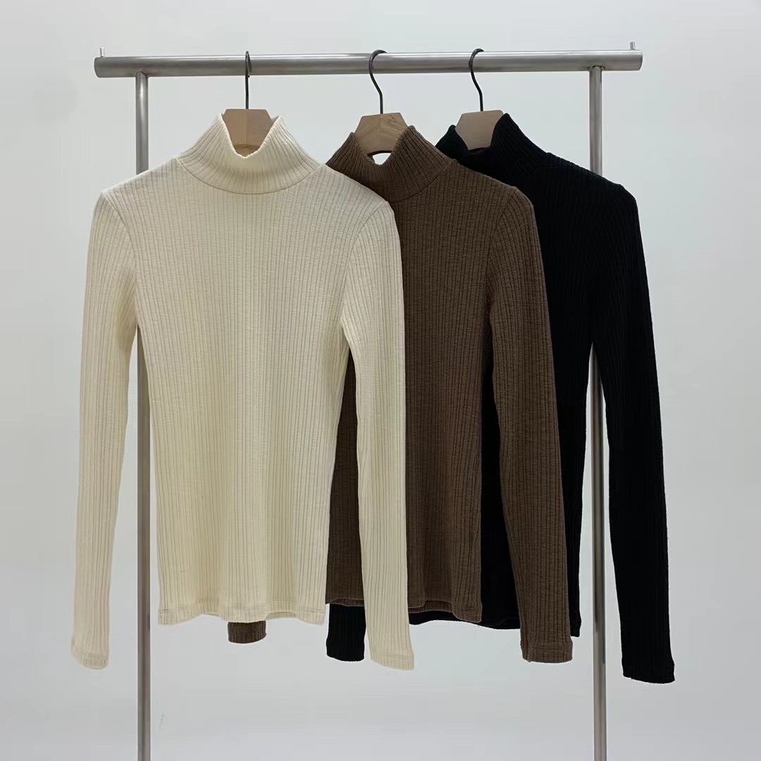 高领褶皱打底衫