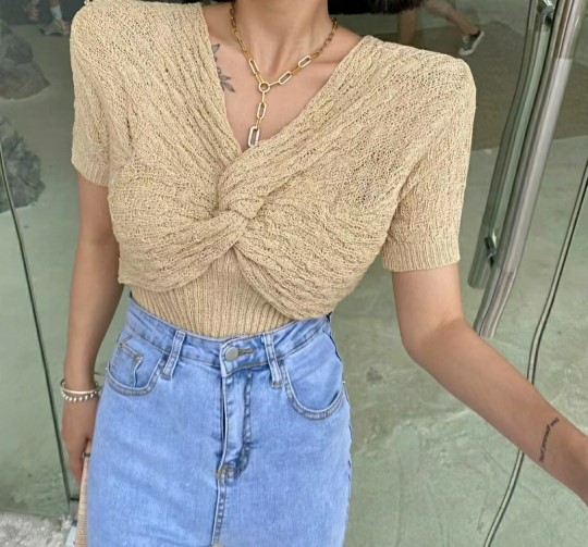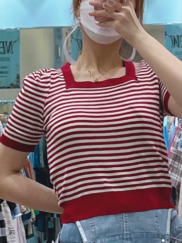 밀크 단가라 반팔 니트1